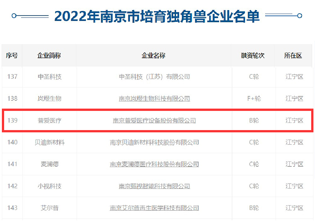 繼2021年獲此殊榮,普愛醫(yī)療再次被評(píng)為“南京市培育獨(dú)角獸企業(yè)”,彰顯了普愛醫(yī)療日益壯大的企業(yè)實(shí)力和業(yè)界對(duì)公司科研及發(fā)展成果的充分肯定。