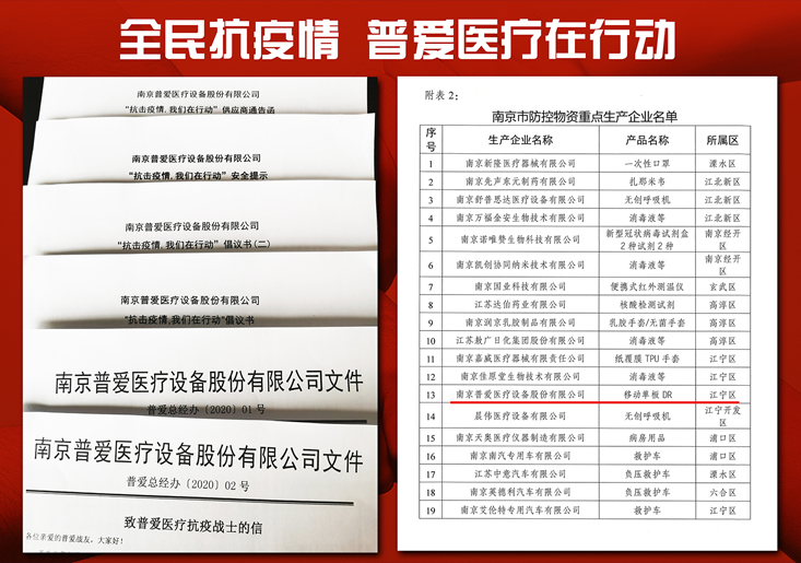 突如其來的傳染疫情,牽動億萬國人的心。作為國內(nèi)醫(yī)學(xué)影像設(shè)備主力企業(yè),江蘇省數(shù)字化醫(yī)學(xué)影像工程技術(shù)研究中心,普愛醫(yī)療被列為南京市19家重點保供企業(yè)名單。